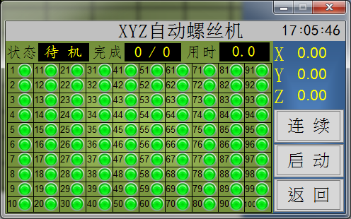 本系统适用于单批单Y的自动锁螺丝系统,其他类型的机台(双批、双Y)有其他对应系统适用,操作界面类似,有问题或需求请致电我公司联系洽谈。